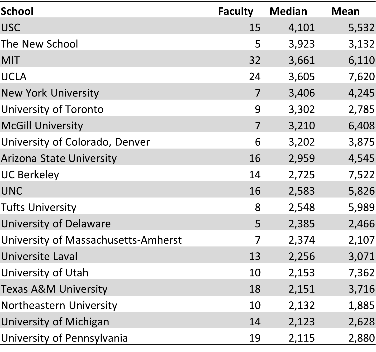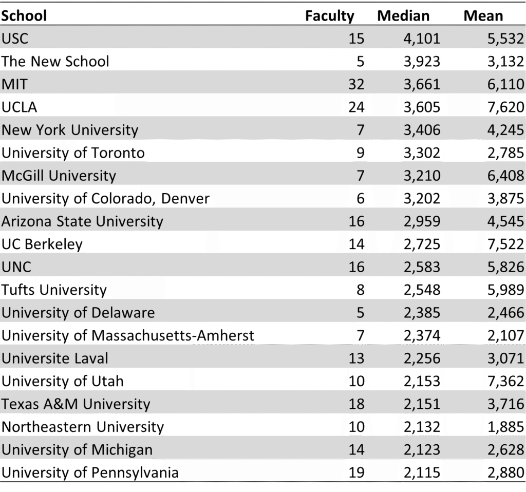 Top 20 Schools by Median Citations